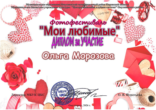 Дипломы "Мои любимые" 2026