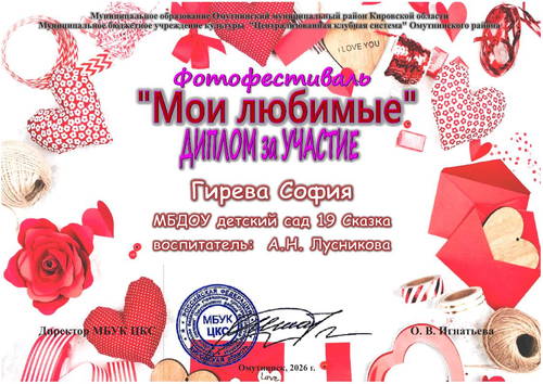 Дипломы "Мои любимые" 2026