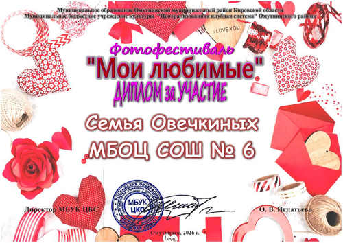 Дипломы "Мои любимые" 2026