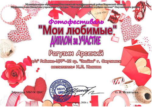 Дипломы "Мои любимые" 2026
