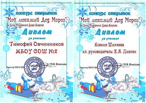 Дипломы "Мой любимый Дед Мороз"
