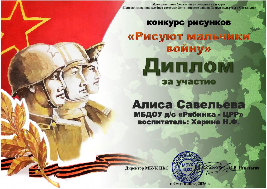 » Дипломы "Рисуют мальчики войну" 2026