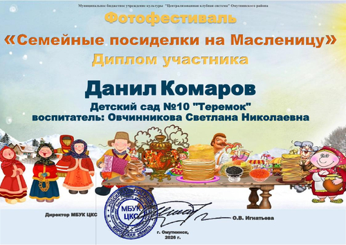Дипломы "Семейные посиделки на Масленицу 2026"