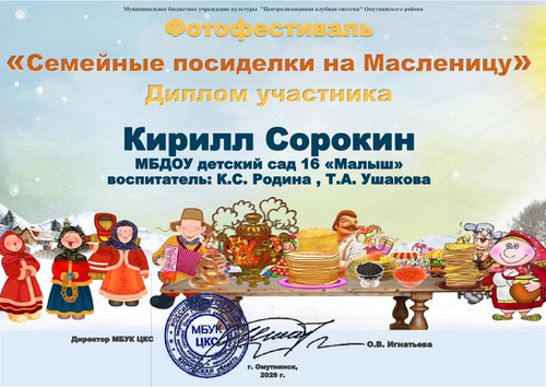 Дипломы "Семейные посиделки на Масленицу 2026"