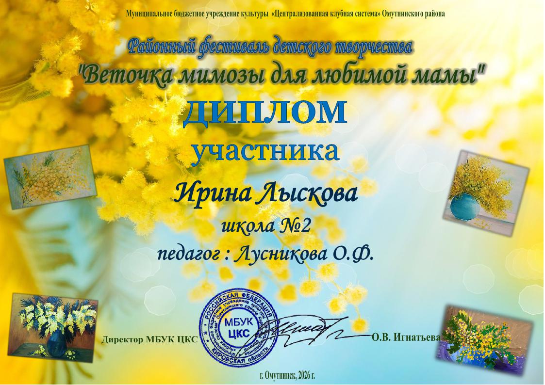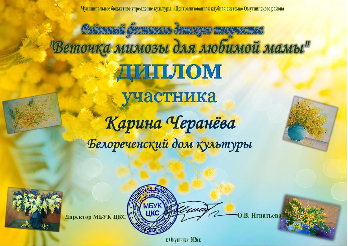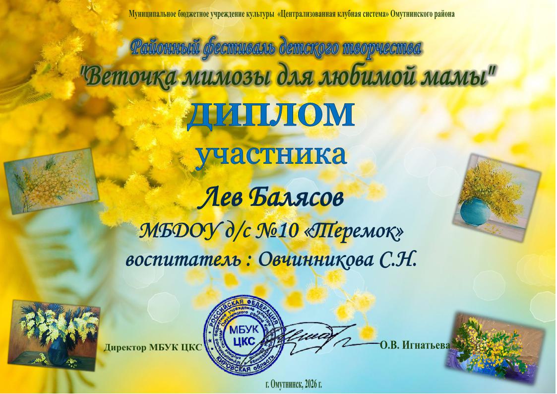 Главная » Фотоальбом » Дипломы "Веточка мимозы для любимой мамы" 2026