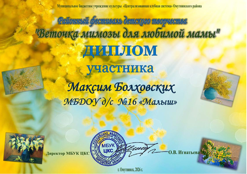Дипломы "Веточка мимозы для любимой мамы" 2026