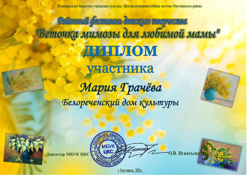 Дипломы "Веточка мимозы для любимой мамы" 2026