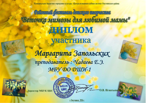 Дипломы "Веточка мимозы для любимой мамы" 2026