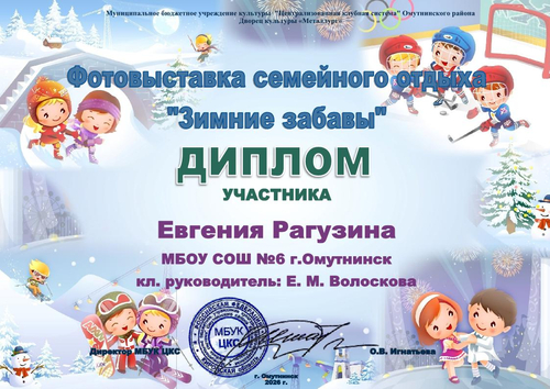 Дипломы "Зимние забавы"